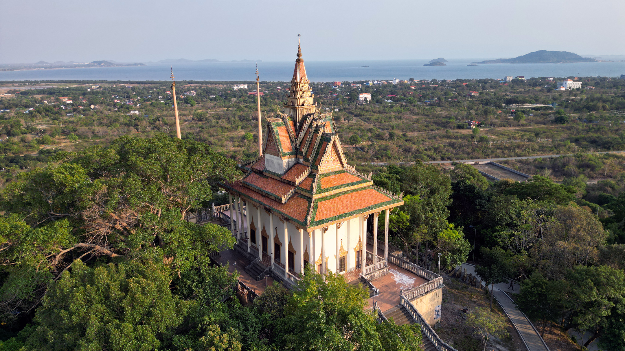 Vaade Wat Samathi templile. Vaadates Kep’ist mere suunas horisondile võib muuhulgas näha Vietnami suurimat saart Phu Quoc’i.