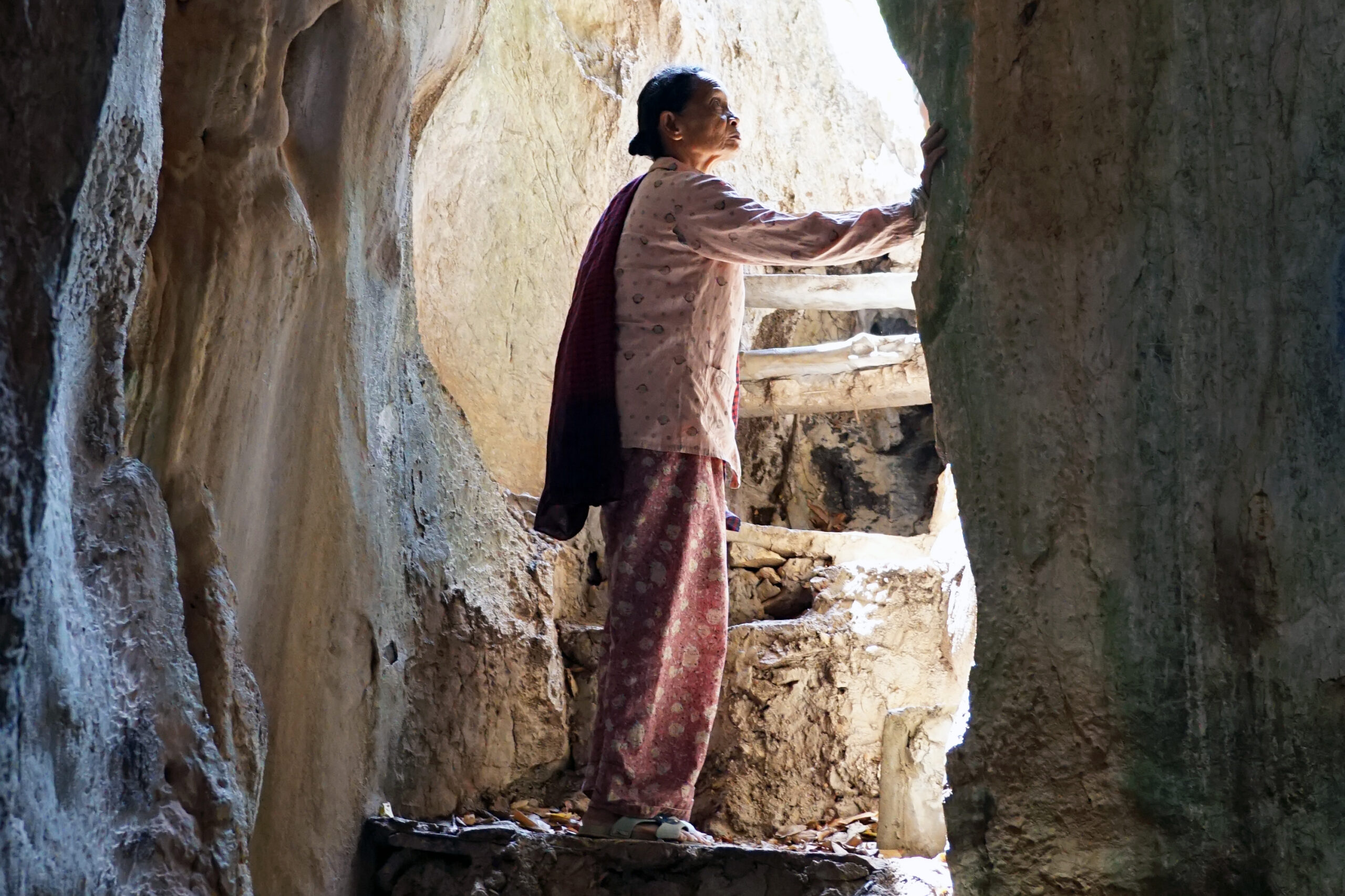Eakas naine ja koobas.